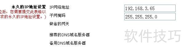 6、 进入管理界面后,输入预先设定的固定IP地址,例如192.168.3.65。