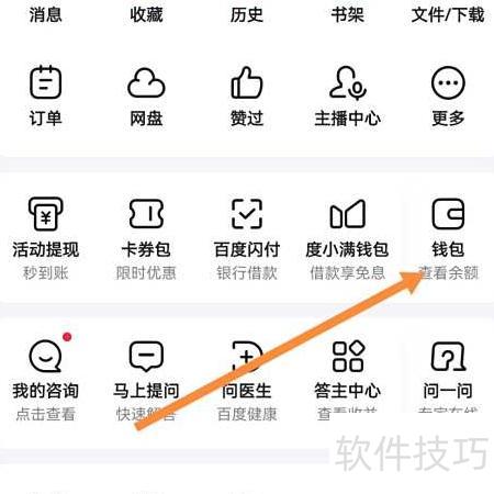 1、 打开iPhone,进入百度App,点击我的页面中的钱包选项。