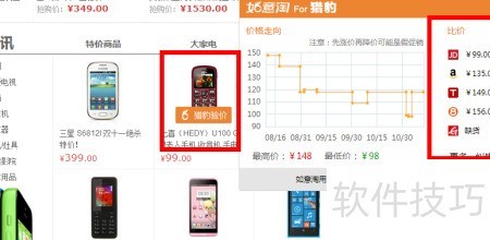 5、 进入购物网站,随意选择一件商品,将鼠标悬停在商品上,页面会显示猎豹比价图标。再将鼠标移至该图标,即可查看该商品在其他平台的价格信息。
