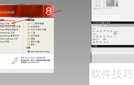 1、 启动Flash8,创建一个新的Flash文档。