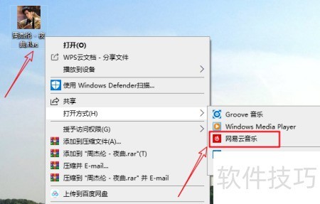 1、 所示,电脑桌面上有一首flac格式的歌曲,右键点击该文件,选择打开方式,然后选用网易云音乐或其他音乐播放器如酷狗音乐、QQ音乐即可播放。