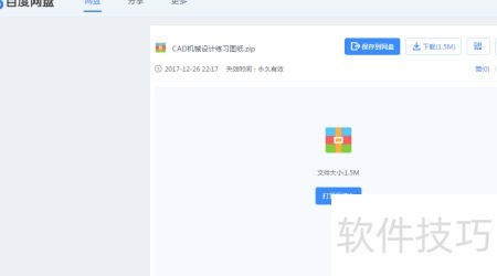 5、 在百度网盘下载页面,可按需求选择保存到网盘或直接下载,获取所需的CAD图纸压缩包.zip文件,操作所示。