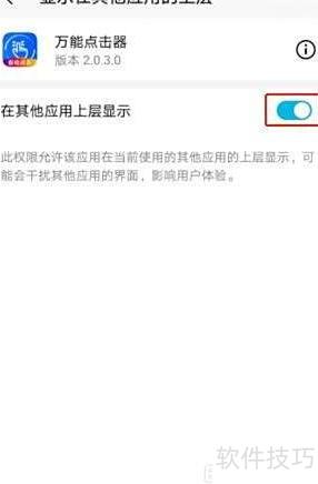 1、 打开万能点击器,进入连点器启动设置,开启悬浮窗权限即可使用。