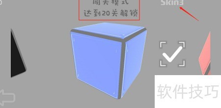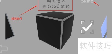 6、 小方块名称已更改为Skin2,外观较Skin1更为圆润。其上方显示了该皮肤的解锁所需条件,整体视觉效果更加柔和,细节设计也有所调整,呈现出不同的风格特征。