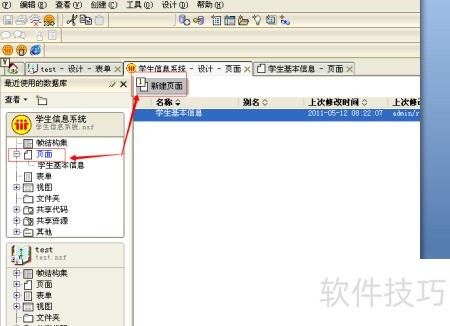 4、 打开空白数据库,创建新页面并输入内容,将文件命名为学生基本信息后保存。