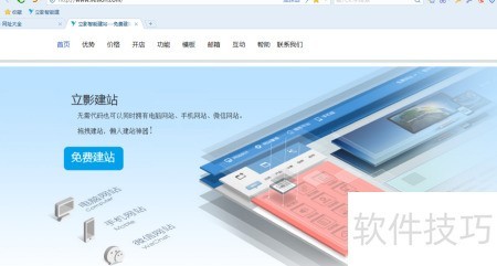 1、 先搜索立影智能建站,再点击其主题下的免费建站选项。