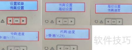 11、 在设置菜单中进入传真设置,选择高级设置中的传真速度选项,共有三档可选,默认为中速,建议调整为慢速,以提升传真信号的稳定性。