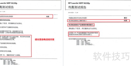 7、 第四项拨号音检测失败可能由多种原因引起,如电话线接反,或传真进线先接固定电话再连打印机导致信号减弱。请仔细检查线路连接,必要时更换线路进行测试。