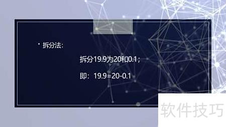 1、 将19.9分解为20减去0.1。