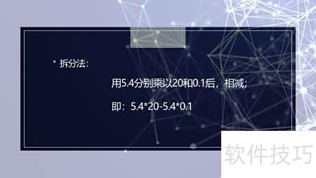 将19.9拆分为20减0.1,原式变为5.4×(20-0.1)+0.54,先计算乘法再相加,运算更简便。