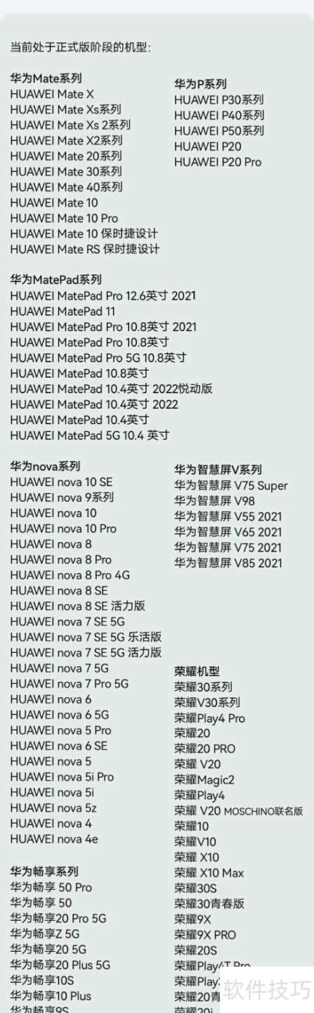 4、 查看鸿蒙系统兼容的手机型号列表。