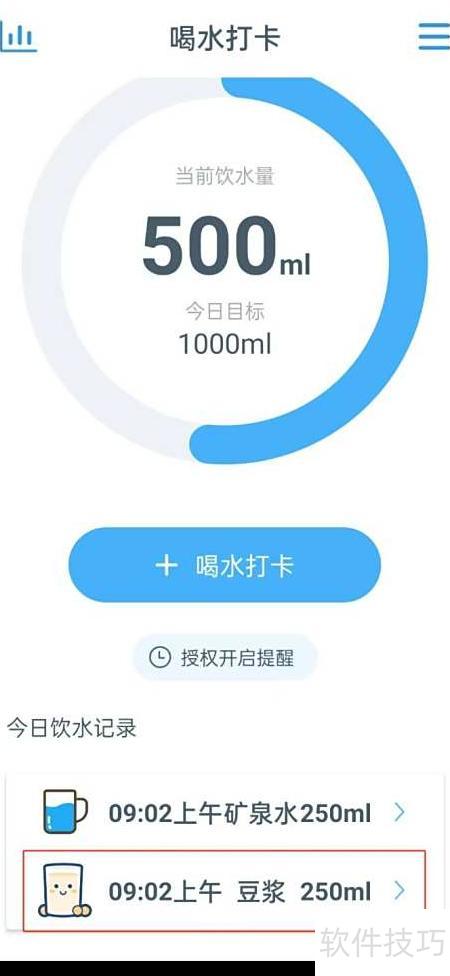 1、 进入喝水小管家主页,点击底部打卡记录豆浆。
