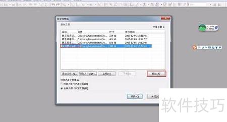 4、 若误选文件,可直接选中该文件后点击移除将其删除,确保仅保留正确的源文件。