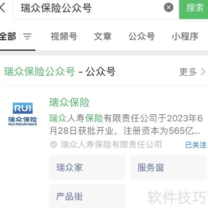 3、 在弹出页面中选择瑞众保险公众号