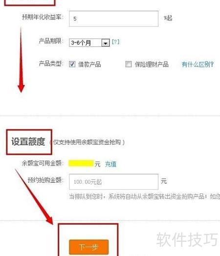 6、 设定目标与金额,点击下一步。