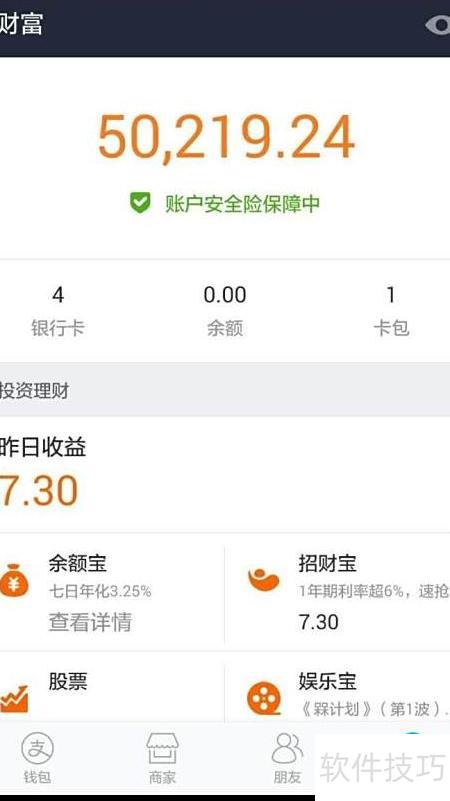 1、 打开支付宝手机应用,点击右下角财富进入相关页面。