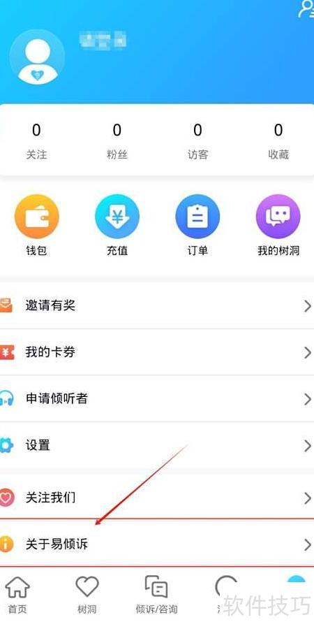 3、 进入个人页面,选择关于易倾诉并按提示完成操作。