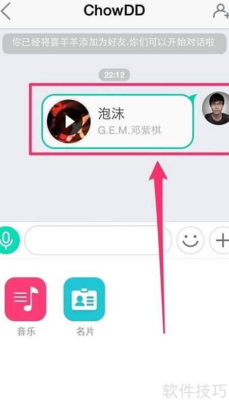 2、 歌曲已发送至聊天框,好友在易信中点击即可播放收听。