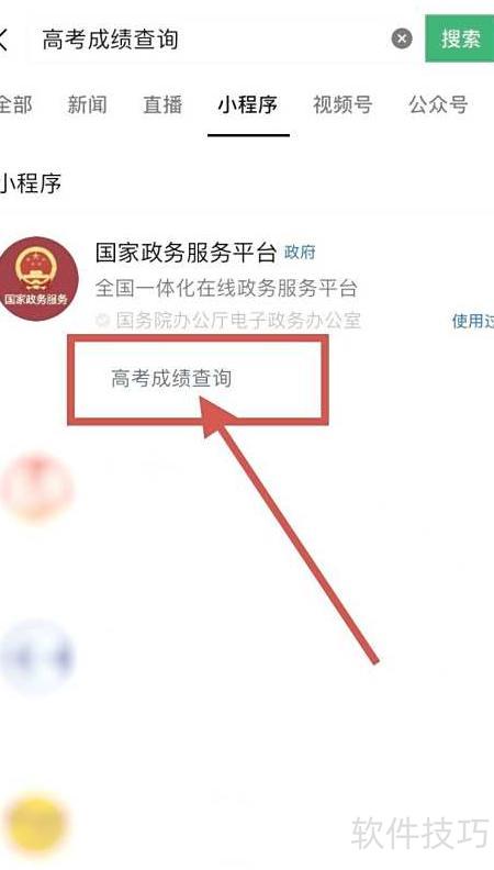 1、 打开手机微信,搜索高考成绩查询即可进入相关页面。