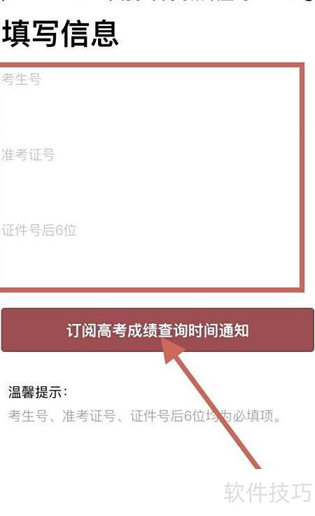 5、 无需填写个人信息和准考证号,只需订阅高考成绩查询时间提醒,即可第一时间通过微信获取通知。