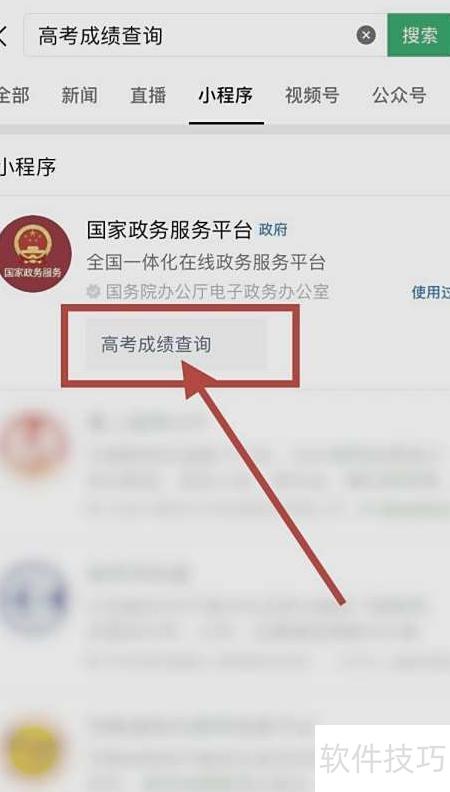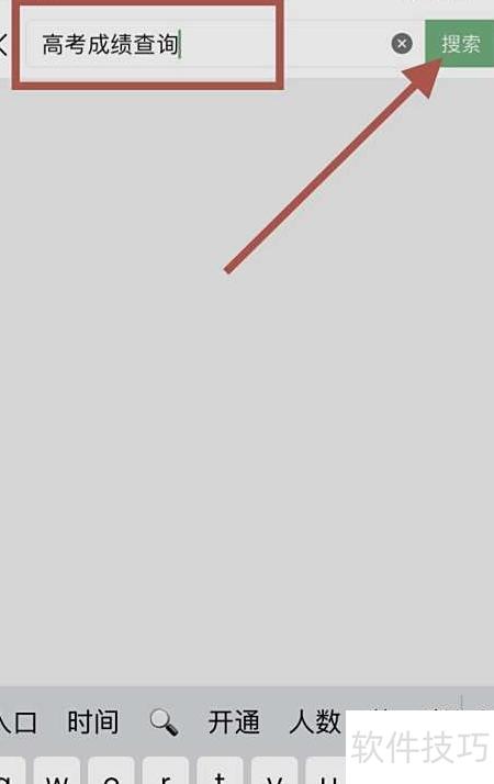 1、 打开手机微信,在搜索栏输入高考成绩查询并进入相关服务。