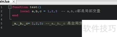 9、 默认情况下,变量被视为全局变量。若要定义局部变量,需在首次赋值时使用local关键字进行声明。例如:local a,b,c = 1,2,3,此时a、b、c均为局部变量。