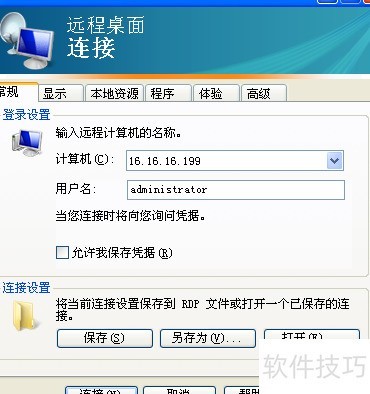5、 在远程桌面对话框中选择选项,输入IP地址、用户名和密码,完成设置后点击连接即可。