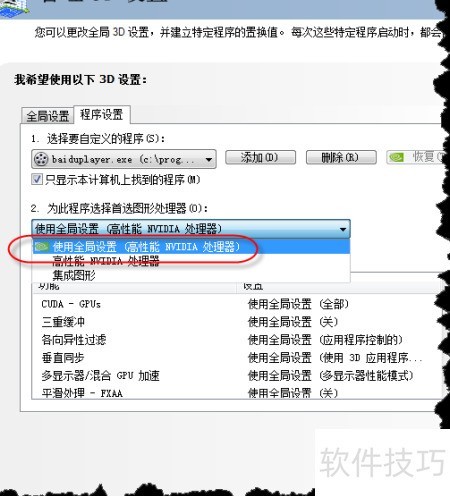 4、 将程序首选图形处理器设为使用全局设置(高性能NVIDIA处理器)。