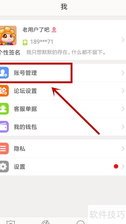 2、 进入我页面,点击账号管理即可查看,操作所示。