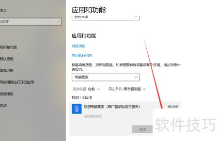 6、 进入应用设置,搜索电脑管家,找到后点击结果中的选项即可。