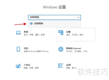 3、 在Windows设置中查找并进入控制面板。
