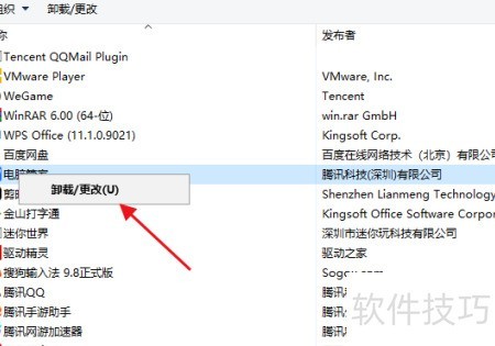 5、 在卸载程序中找到电脑管家,右键点击并选择卸载即可。