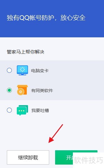 6、 电脑管家卸载页面弹出后,点击继续完成卸载操作。