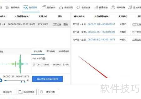 3、 导入音频后,拖动进度条选取需剪辑片段,确认并添加至输出列表即可。