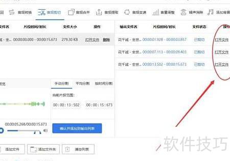 5、 处理完毕后,状态显示为已剪切,点击打开文件即可查看转换生成的MP3音频。