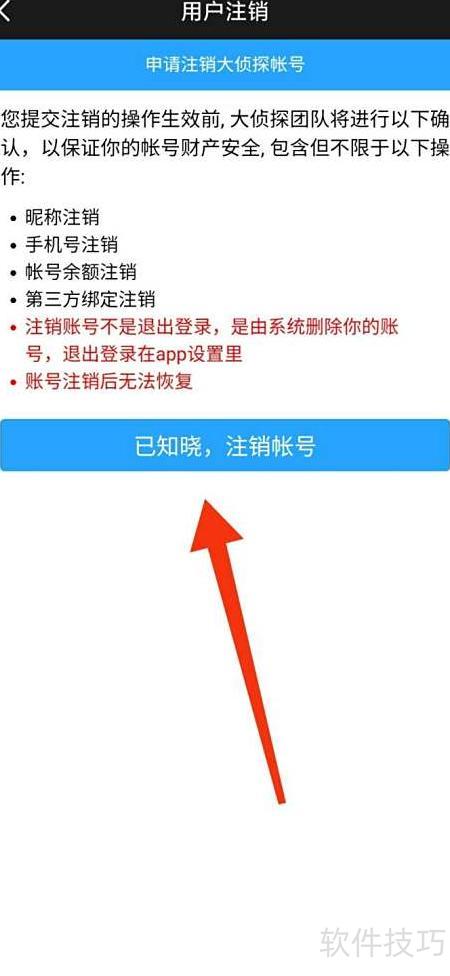 5、 进入新页面查看注销信息,确认已知晓后点击注销账户。