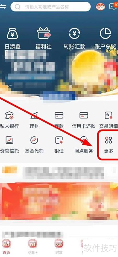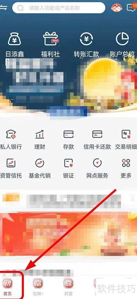 1、 打开广州银行应用,点击首页左下角。