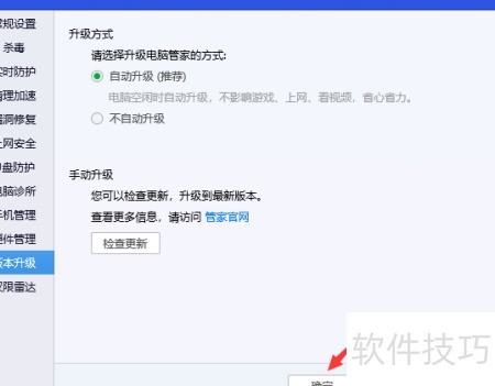 6、 点击右下角确定,电脑管家后续版本更新将自动完成。