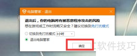 1、 右键点击电脑管家图标,选择退出并确认,即可关闭程序运行。