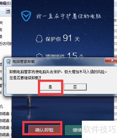 6、 进入电脑管家卸载界面后,依次点击狠心卸载、确认卸载,最后点击确定完成操作。