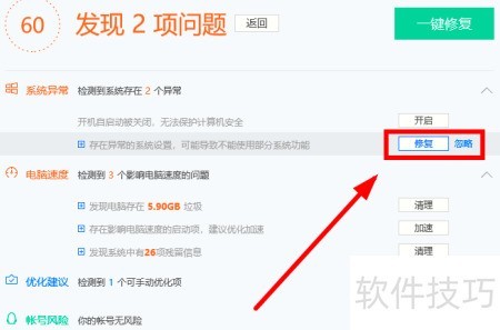 5、 若具备基本电脑知识,可依实际情况逐一修复或选择忽略问题。