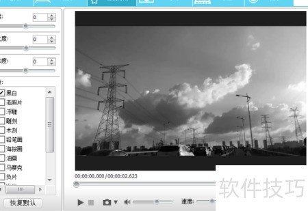 3、 提供14种滤镜特效,可调节亮度、对比度与饱和度。