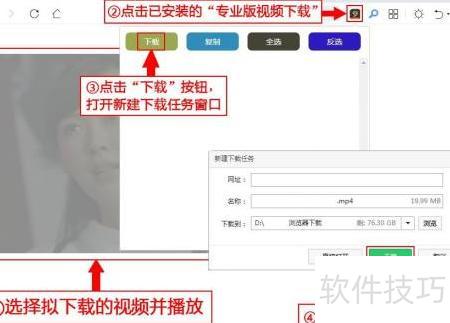 8、 播放想要保存的视频,选择已安装的应用,点击下载选项,弹出新建下载任务界面后,确认下载链接并点击下载按钮即可完成操作。