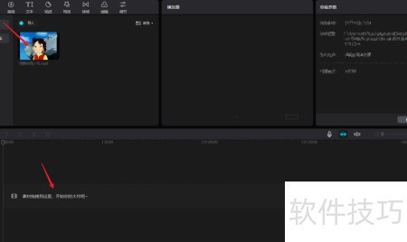 5、 返回编辑界面,鼠标拖拽视频至素材区域。