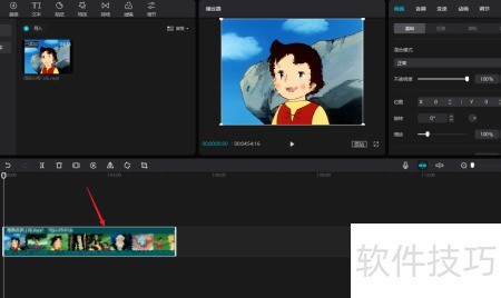 6、 素材栏已显示视频,可直接导入并用于创作。