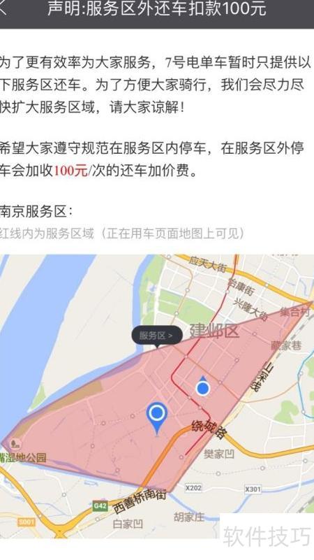 3、 使用车辆超时一小时以上,每小时收取10元超时费;未在指定停车点还车,罚款10元;若未在服务区内还车,则需支付100元还车加价费。