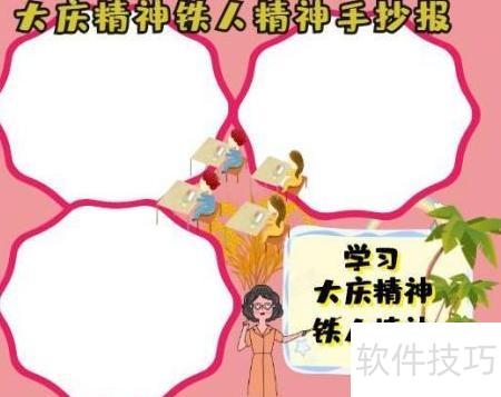 2、 在手抄报左下角绘制一个边框,体现大庆精神与铁人精神。