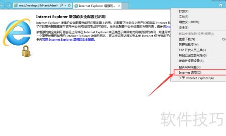 2、 打开IE浏览器,点击工具菜单中的Internet选项进行设置。