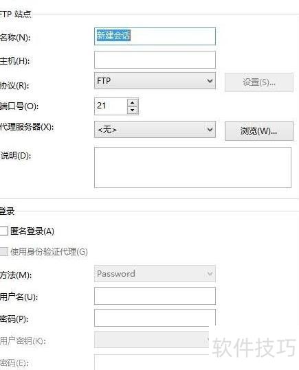 1、 首先通过FTP工具连接服务器,主机栏输入IP地址或FTP登录地址,端口设为默认的21,然后在用户名和密码栏中分别填入对应的FTP账户信息即可完成连接。
