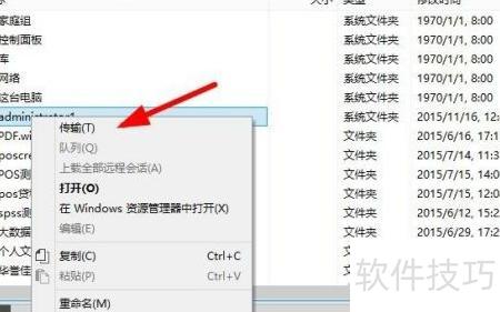 3、 上传文件至服务器时,左侧选中文件后右键点击进行传输操作。